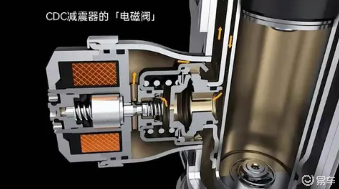 CDC可变悬架,本质上也是传统的悬架但是却加了一个CDC电控减振器,因此可以通过改变阻尼器内部的电磁阀开度,去调节内部阻尼油液的流量,以实现悬架的变硬或变软,而整个过程所需要的时间为10毫秒左右。