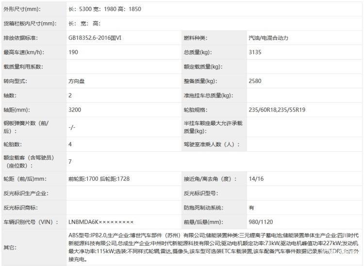 动力方面,新车将采用1.5T+电机组成的增程系统,发动机最大功率118kW,此次申报的仅为单电机版本,电机最大功率227kW,使用磷酸铁锂电池组相信,未来应该也会有双电机版本选择。