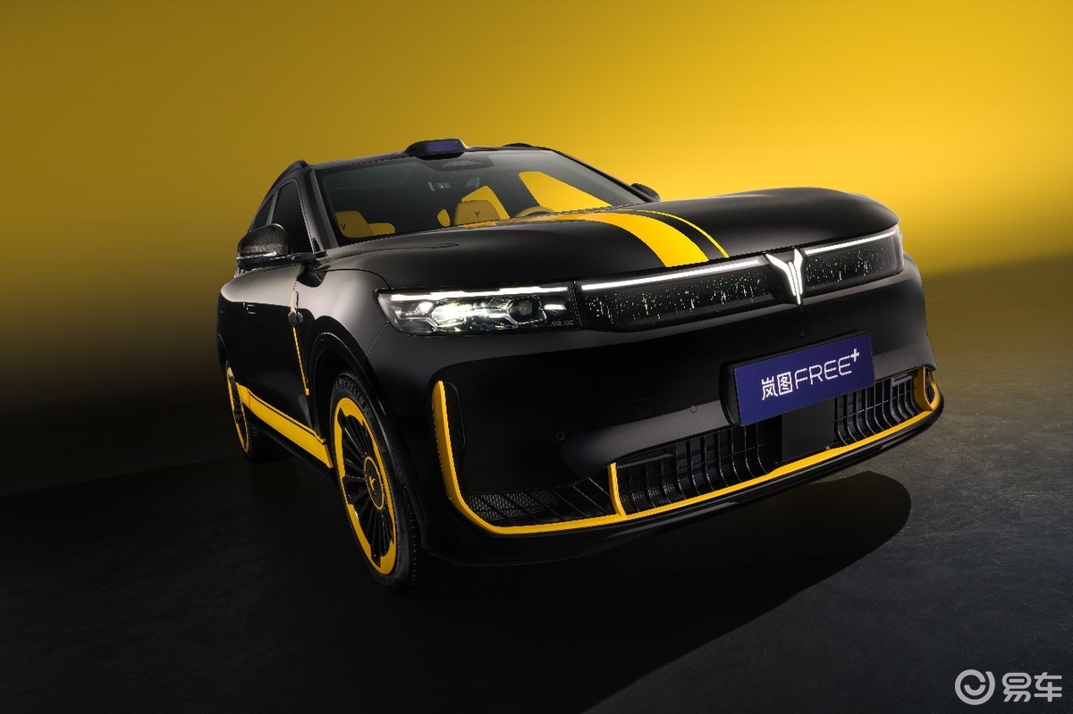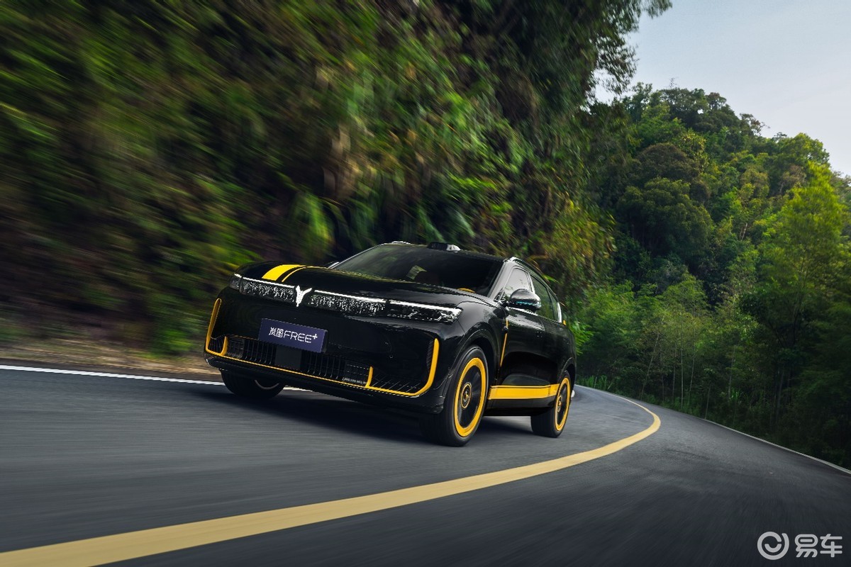 在设计层面,岚图FREE+运动定制版的「暗影流光」套件堪称点睛之笔。其外观设计灵感源自深邃夜空,将暗影的神秘与流光的速度感融入车漆工艺,实现了静止时深邃内敛、运动时流光溢彩的视觉效果。细节处,亮黄色拉花涂装点缀引擎盖与车门下部,前后保区域及翼子板的亮黄装饰强化了运动基因,搭配专属“峰回路转”尾翼与FREE+玄金尾标,让新车在车流中极具辨识度。20英寸流光驭风动感轮毂采用黑色轮辐与流金色轮辋的撞色设计,配合黄色卡钳,转动时呈现的“流光”动态效果,进一步拉满了运动氛围。