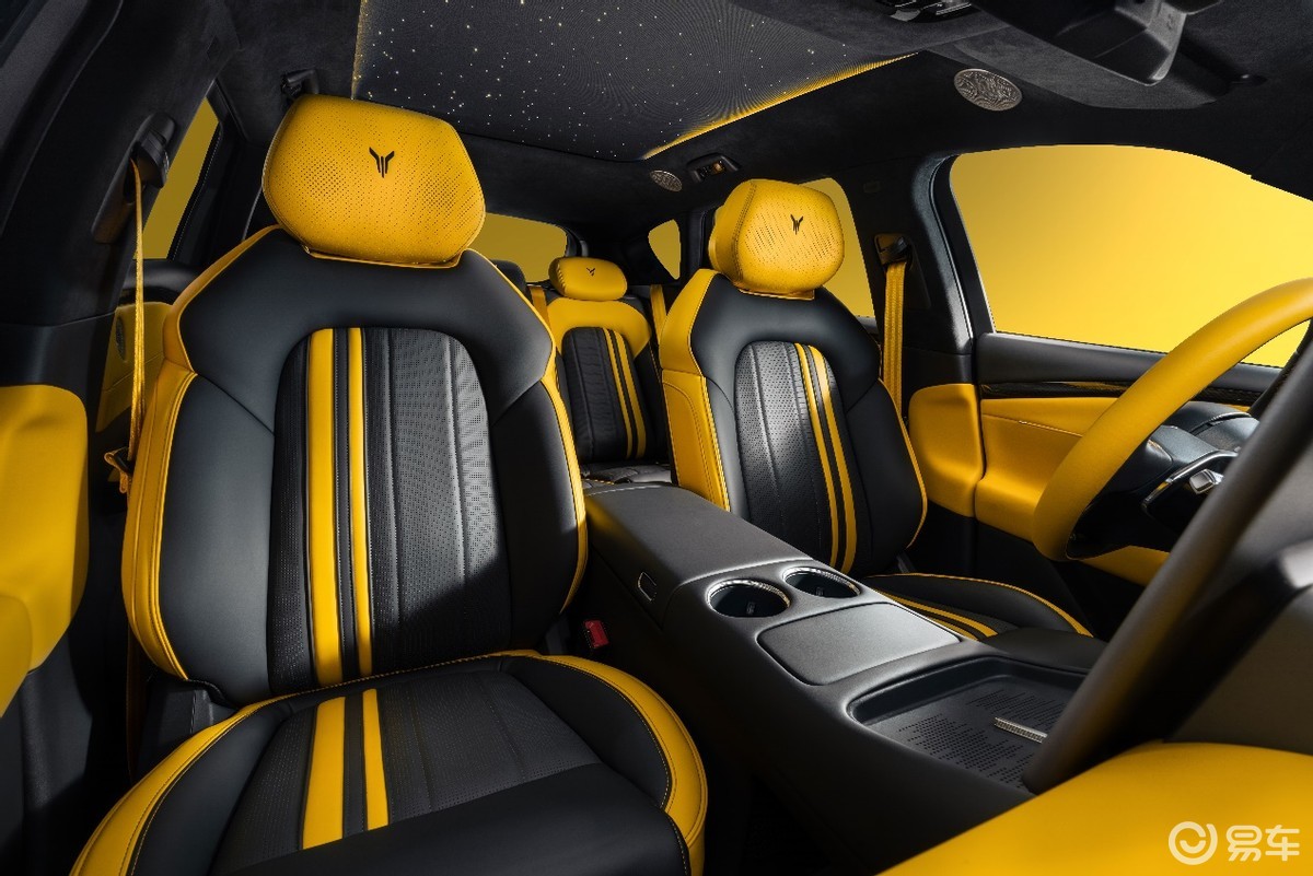 内饰延续玄金双拼撞色设计,仪表台、方向盘等关键区域的黄色超纤包覆,与A/B/C柱及顶棚的仿麂皮材质形成鲜明对比,瞬间点燃座舱的运动激情。升级定制的NAPPA环抱式运动座椅选用头层牛皮,凭借精密的人体工学设计,在激烈驾驶时能提供全方位支撑与包裹,兼顾舒适与性能。而覆盖外后视镜、驾驶舱面板等部位的暗影哑光碳纤维组件,以100%真碳纤维丝的独特纹理,为座舱注入了纯粹的运动豪华气息。可选装的智慧星空顶更是加分项,十二大定制模式与十四种分区星空色彩,让运动激情与浪漫情怀实现了完美融合。